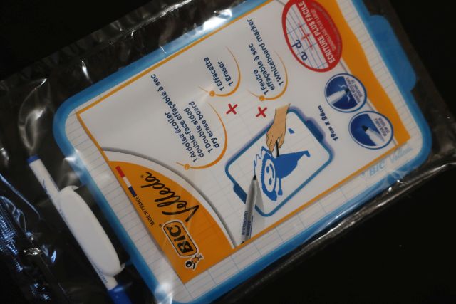 【AMAZON FRANCE】【MADE IN FRANCE】BIC Velleda Ardoise Ecolier Double Face (21 x 31 cm) Effaçable à Sec avec Feutre Bleu Effaçable à Sec et Effacette - Verte, Lot de 1